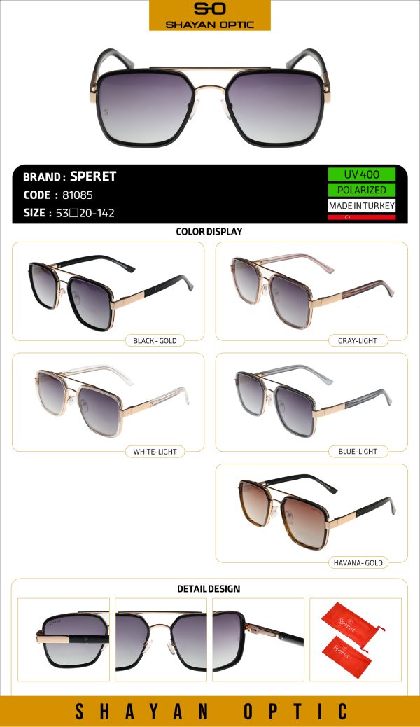 عینک آفتابی زنانه مدل 81085 برند SPERET با طراحی خاص و ظریف برای استایلهای زنانه.