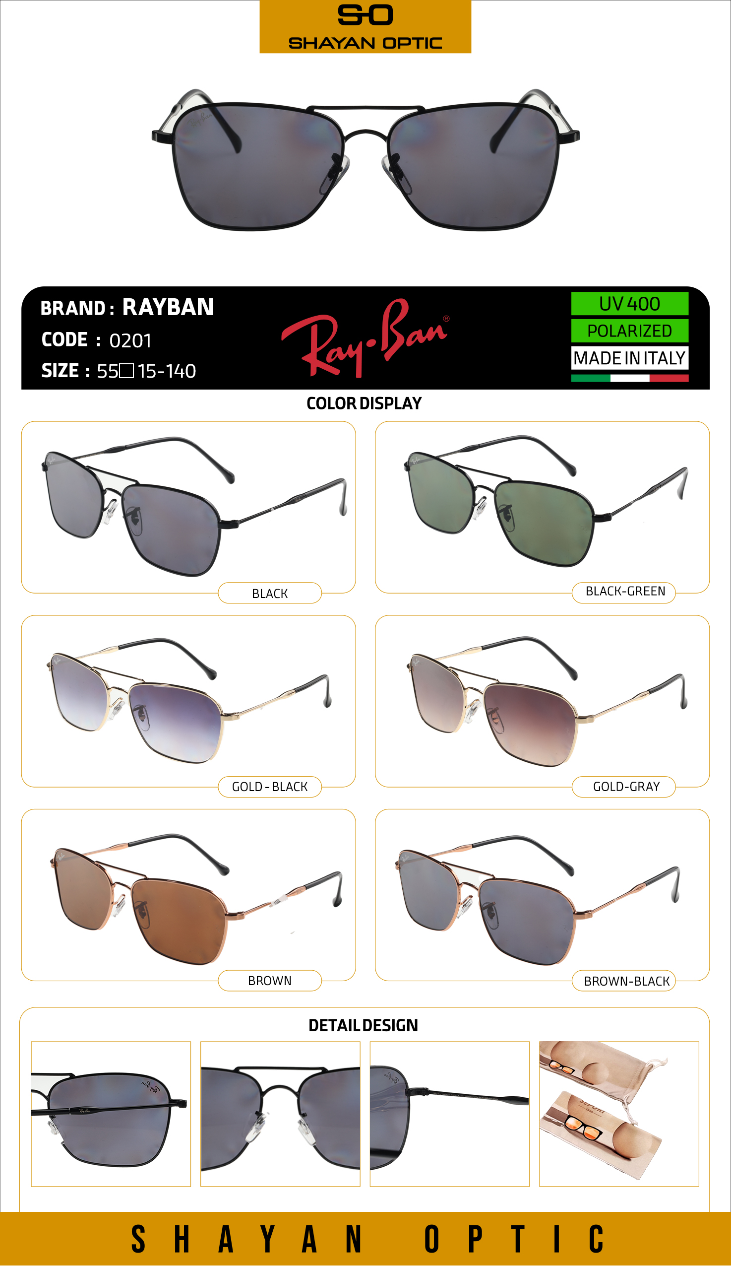عینک RAYBAN مدل 0102 با طراحی کلاسیک و لنزهای پلاریزه محبوبیت زیادی میان دوستداران استایل دارد. مناسب برای آقایان و بانوان با هر نوع فرم صورت.