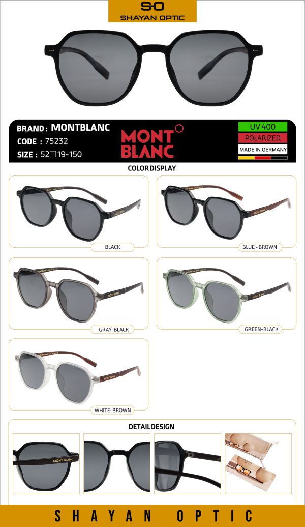 عینک آفتابی برند مون‌بلان مدل 75232 با عدسی‌های فیلتر UV400 و طراحی خوش‌فرم برای استفاده روزمره و سفر. فریم سبک و مقاوم، مناسب صورت‌های مختلف؛ گزینه‌ای عالی برای رانندگی و فعالیت‌های روزانه. ارسال سریع از اپتیک شایان و گارانتی اصالت کالا.